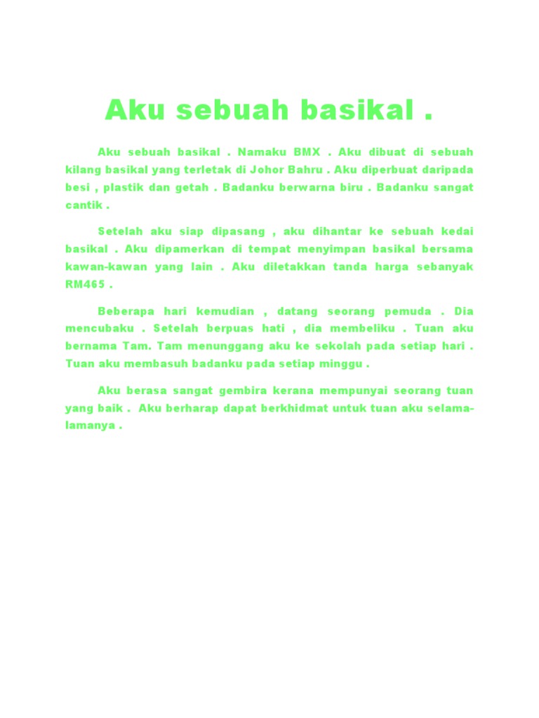 Mari kita belajar karangan bertajuk quotaku sebuah basikalquot-all copyright reserved to cikgu zirafah-terima kasih pexel- Karangan Autobiografi 1 Aku Sebuah Ba. Continue ReadingDownload Free PDF. Ibu Hock Seng membeli sebuah basikal yang baharu dan cantik untuk Hock Seng.