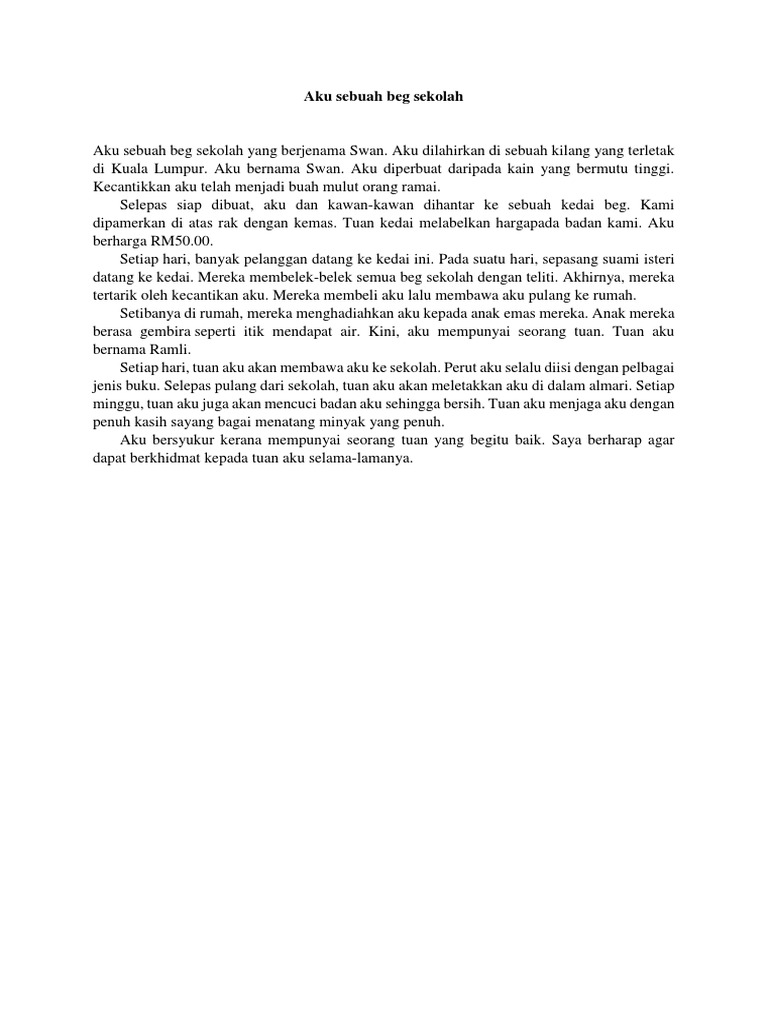Karangan Pendek Aku Sebuah Beg Sekolah Worksheet